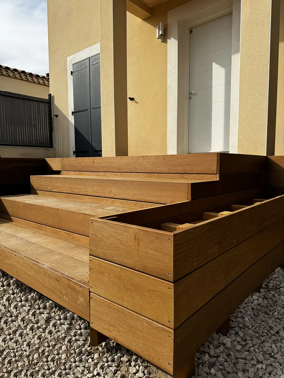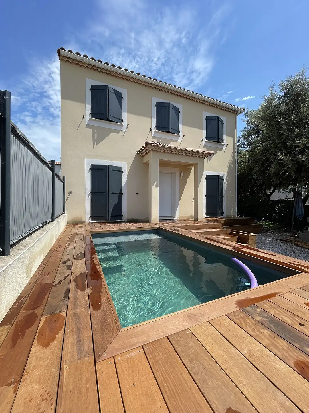 Notre client a projeté la création d’un contour en bois pour sa piscine, en tenant compte de plusieurs aspects pour garantir la fonctionnalité et l’esthétique de son espace extérieur. Il souhaitait un coffrage de piscine qui lui permette de profiter pleinement de son jardin. L’objectif était d’intégrer une touche de verdure en harmonie avec l’architecture environnante. L’ajout d’une jardinière intégrée a parfaitement répondu à ce besoin, apportant une dimension organique à l’ensemble. Cette jardinière devait également offrir une transition douce entre la zone d’entrée et le bassin, créant ainsi un espace accueillant et invitant dès le premier pas.